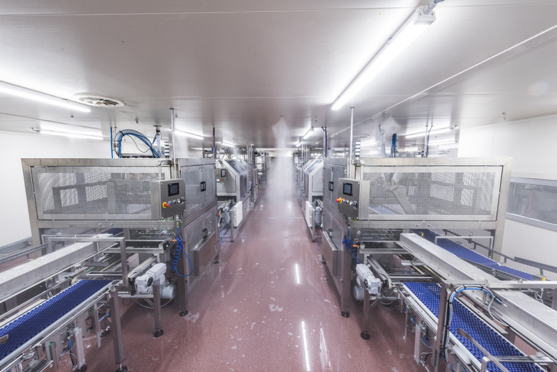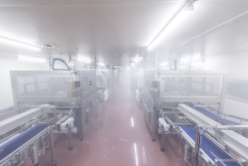 Ablaufsequenzen einer 3D-Desinfektionsanlage in einem lebensmittelverarbeitenden Gewerbe